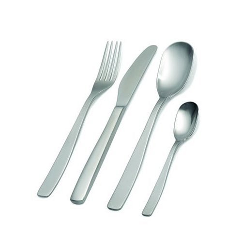 - 18/10 Stainless steel AISI304; designed by Jasper Morrison; dishwasher safe set composed of six table spoons, six table forks, six table knives monoblock, six coffee spoons; satin finish