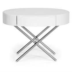 FEATURED Coquille Modern Glossy White Oval Coffee Table with Drawer