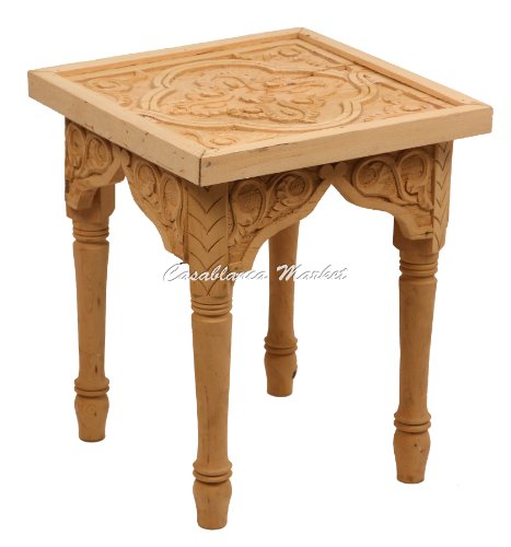 This rustic Moroccan side table is very unique because of its old design and intricate wood motifs. You can use it indoor or outdoor just keep away from the rain. You can keep it in its raw and natural look or you can add a stain finish. Size: 17"LX 17"Wx20"H