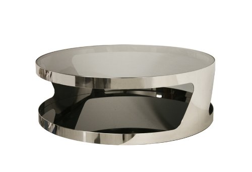 Sleek, urban, and refined, the Genesis Table takes contemporary to a new level. A circular stainless steel frame has a reflective polished luster and supports two surfaces: a transparent glass top in tinted smoke gray and a dark-tinted mirror bottom piece. Small non-marking feet are well-concealed and help protect sensitive floors. A matching end table is also available.