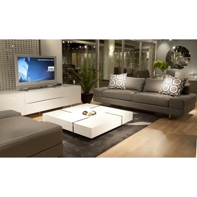 2956-CT.WHG Finish: White Features: -Classic contemporary for the home.-Contemporary style.-Clear glass legs.-Black tray. Dimensions: -Overall dimensions: 11'' Height x 47'' Width x 47'' Depth.