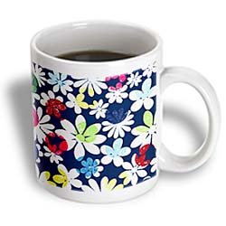 Colorful Floral pattern - Contemporary Modern Flower print on blue - Rainbow white trendy flowers Mug is available in both 11 oz and 15 oz. Why drink out of an ordinary mug when a custom printed mug is so much cooler? This ceramic mug is lead free, microwave safe and FDA approved. Image is printed on both sides. Hand washing is recommended.