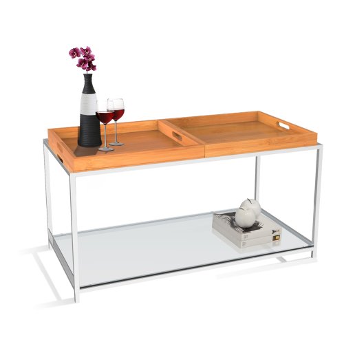Exciting new design from convenience concepts that combines urban design and multi-function use. the palm beach coffee table features two removable bamboo trays that can be reversed to use as a flat surface or as serving trays. clear tempered glass table top allows use of coffee table with or without trays.