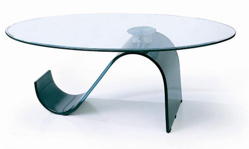 - 26 in. W x 49 in. L x 18 in. H With an oval tempered glass top supported by a black bent glass "S" shaped base, the C22 is both simple and elegant. This cocktail table combines a futuristic look with modern functionality and would be an excellent compliment to any living space.