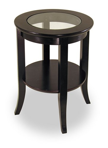 Elegant Round End Table w/Glass Top H 22.5 x W 18.5 x D 18.5