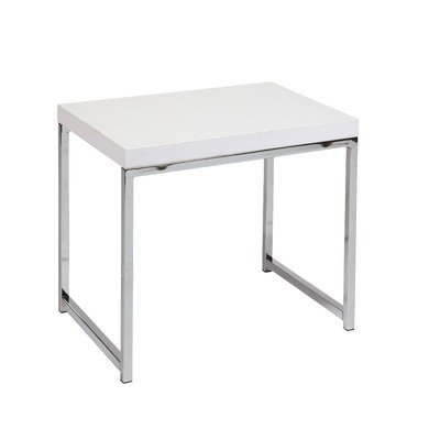 WST09-WH Finish: Chrome/ White Features: -Tabletop crafted of wood veneer over a MDF top.-Stylish chrome legs made to match the most elegant of room setups. Construction: -Frame constructed of sturdy chrome steel built for durability and style. Collection: -Wall Street collection.-Browse additional pieces in the Wall Street Collection for a complete set.