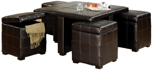 - 5-Piece ottoman cocktail table with matching stools is a great entertaining piece of furniture for any modern to transitional home