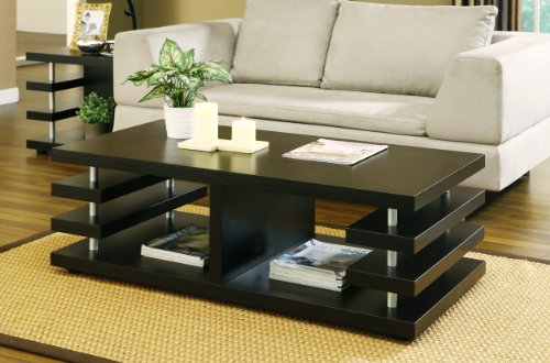 Add an extra touch of style and storage to your home with modern rectangular top coffee table. Features a unique design with elevated shelving for an open and airy appearance. Coffee table is made of medium fiber board materials. Coordinating end table sold on Amazon.com under item no. ID-11415ET. To clean, use damp cotton cloth to wipe clean. Assembly required. Product Made in China. Once assembled, product measures 47.25-inch wide by 23.25-inch deep by 17-inch high; 30-days hassle-free replace