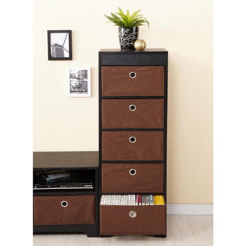 Fresco Collection All Purpose Modern Chest. An all purpose storage chest from our modern Fresco collection. A very well crafted piece of furniture made out of MDF, wood veneer frame, with polyester/cotton fabric bins. A strikingly versatile Fresco Chest features five spacious fabric storage bins that are easily removable with open circular hardware pull. The frame is nicely coated with sleek finish. Assembly required. Accessories Not Included. Dimensions: 15.9"L x 11.8"W x 46.5"H, 46 lbs.