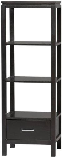 The simple beauty of Sutton Plasma TV Tower is enhanced by the contemporary black finish. The Sutton Collection is suitable for any contemporary or traditional decor. The TV Tower has a large drawer and ample shelving allow you to store your electronics and media in style.