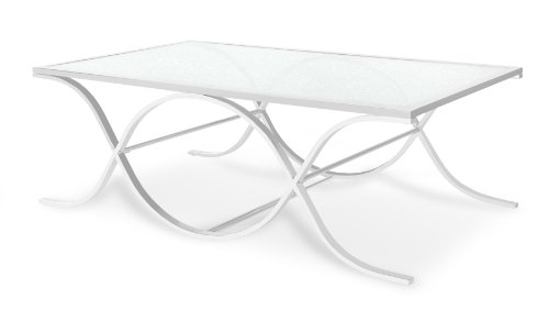 This large coffee table boasts the sought after crackled glass top and a unique base