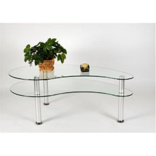 FEATURED RTA Home and Office CT-020 Kidney Shaped Glass and Aluminum Coffee table Color - Silver